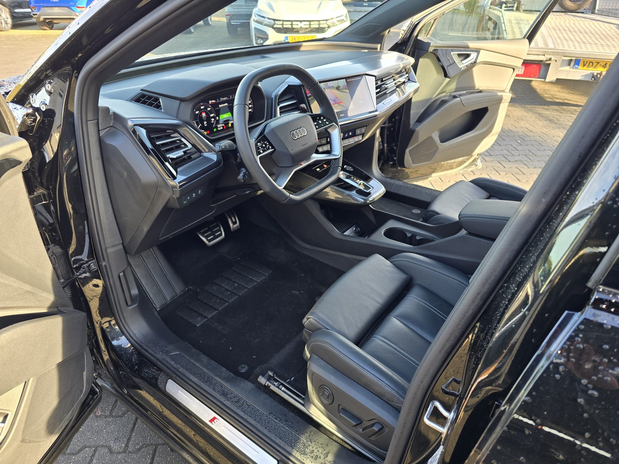Airbag Beifahrerseite abschaltbar, Airbag Fahrer-/Beifahrerseite, Akustischer Fußgängerschutz, Außensound (e-sound), Antriebsart: Heckantrieb, Audi connect (Notruf- und Assistance-System), Audi connect (Remote / Control), Audi Drive Select, Außenspiegel Wagenfarbe, Elektromotor 210 kW (cont. 89 kW), Fahrassistenz-System: Ausweich-Assistent, Fahrassistenz-System: Bremsassistent (Audi pre sense front), Fahrassistenz-System: Insassen-Schutzsystem (Audi pre sense basic) inkl. Audi pre sense rear, Fahrassistenz-System: Müdigkeitserkennung (Pausenempfehlung), Fahrassistenz-System: Spurverlassenswarnung, Fahrassistenz-System: Spurwechselassistent (Side Assist) mit Ausstiegswarnung und Querverkehrs-Assistent, Fensterheber elektrisch vorn + hinten, Frontscheibe Klarglas, Fußmatten Velours, Geschwindigkeits-Begrenzeranlage, Getriebe für Elektrofahrzeug, HV-Batterie 82 kWh brutto / 77 kWh netto, Isofix-Aufnahmen für Kindersitz an Beifahrersitz und Rücksitz, Karosserie: 4-türig, Klimaautomatik, Komfort-Standklimatisierung, Kopf-Airbag-System (Sideguard), Ladedose (AC / DC), Ladekabel mit Typ 2-Stecker (Mode 3), Multi-Media-Interface MMI Navigation Plus mit MMI Touch, On-Board-Ladegerät (bis 7,2 kW), Radstand 2764 mm, Reifenkontroll-Anzeige, Seitenairbag vorn, Seitenairbag vorn mitte (Interaktionsairbag), Sitzheizung vorn, Steckdose (12V-Anschluß) in Mittelkonsole vorn, Vorbereitung Lichtassistent für weitere Funktionen (feature on demand, FOD), Wärmeschutzverglasung grün getönt