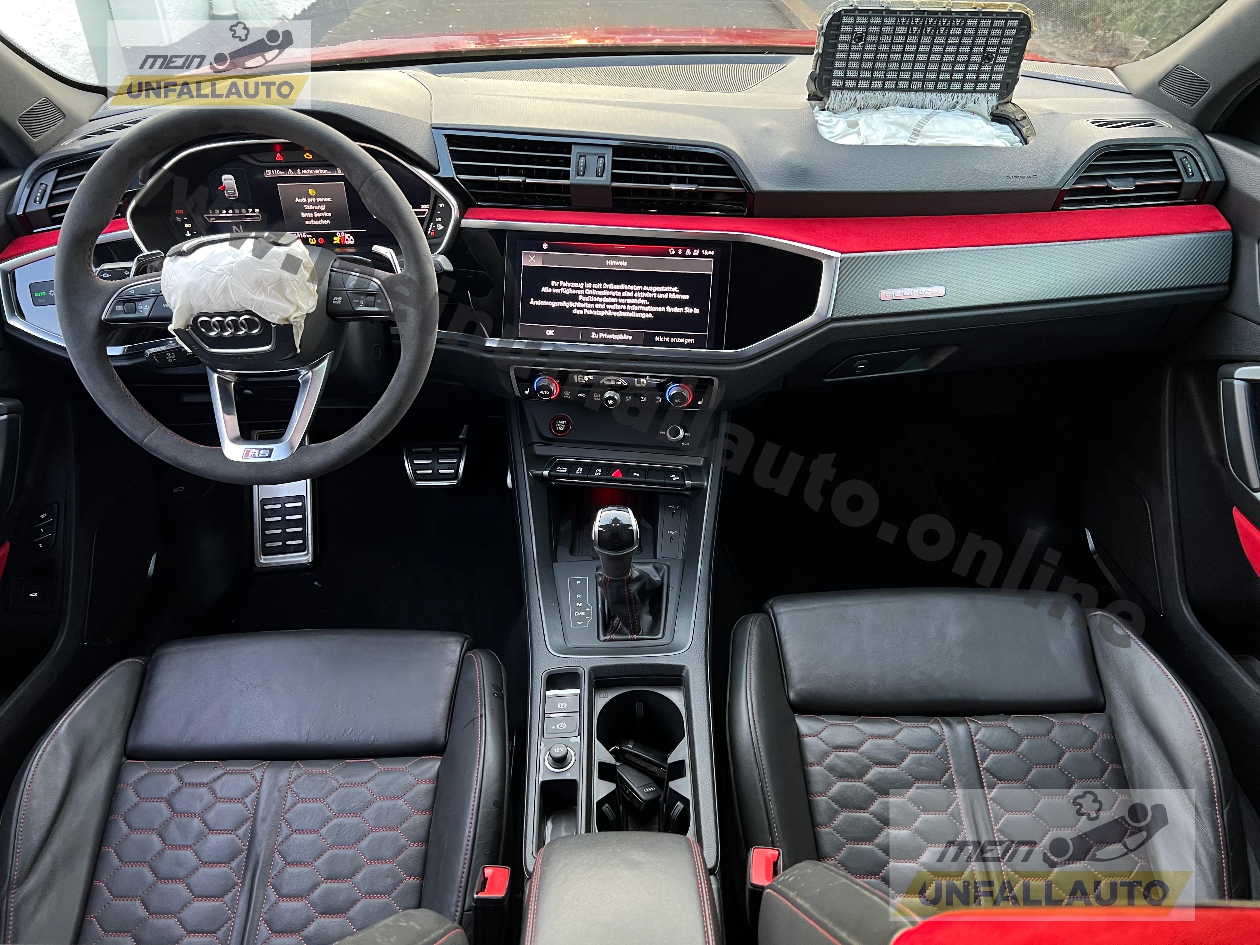 Ablage- und Gepäckraum-Paket, Audi Smartphone Interface, Außenspiegel elektr. verstell-, heiz- und anklappbar, mit Memory, Bluetooth-Freisprecheinrichtung mit Spracherkennung (Audi Phone Box), Design-Paket: RS rot, erweitert (plus), Fahrassistenz-System: Anfahr-Assistent (hold assist), Fahrassistenz-System: Bergabfahr-Assistent, Gepäckraumklappe elektr. betätigt (öffnen + schliessen), Höchstgeschwindigkeit 280 km/h, Innenspiegel mit Abblendautomatik, Isofix-Aufnahmen für Kindersitz an Beifahrersitz, Kamerasystem Umgebungsansicht (Top View), Kombiinstrument digital (virtual cockpit plus), Komfort-Klimaautomatik 3-Zonen, Komfortschlüssel mit Diebstahl-Warnanlage, Kontur / Ambientebeleuchtungs-Paket (plus), LM-Felgen 8,5x20 (5-V-Speichen-Stern-Design, für Winterbereifung), LM-Felgen 8,5x21 (5-V-Speichen, Polygon, schwarz), Matrix-LED-Scheinwerfer, Metallic-Lackierung, Multi-Media-Interface MMI Navigation Plus mit MMI Touch, Optik-Paket schwarz Audi Ringe und Schriftzug, Panorama-Ausstelldach elektrisch, Reifendruck-Kontrollsystem, RS-Sportabgasanlage, RS-Sportsitze vorn, Seitenairbag hinten, Sitze vorn elektr. verstellbar (links mit Memory), Sitzheizung vorn, Sound-System Sonos Premium, Sport-Fahrwerk RS plus mit Dämpferregelung, Steckdose (12V-Anschluß) im Fond (Mittelkonsole)