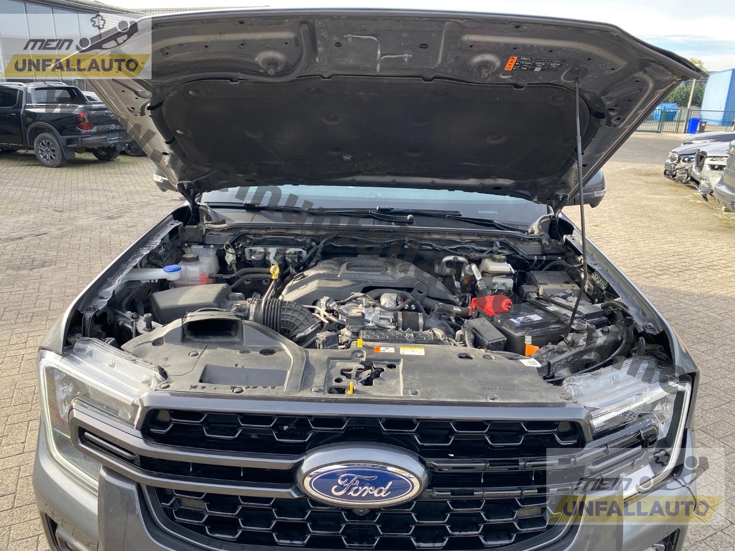 Ausstattungs-Paket: Turnier (Dachreling, Gepäckraum-Abtrennung Netz), Außenspiegel elektr. anklappbar, Außenspiegel elektr. verstell- und heizbar, Außenspiegel Sport Design Anthrazit, Blinkleuchte in Außenspiegel integriert, Dachhimmel Stoff, dunkel, Dachreling, Fensterheber elektrisch hinten, FordPass Connect inkl. eCall, Fußmatten hinten, Fußmatten Premium, Fußmatten vorn, Getriebe Automatik - Typ: 10R80 (10-Stufen), Getränkehalter vorn, Heckklappe Easy Lift (Pick-Up), Heckklappenentriegelung elektrisch (ohne Schloss), Heckleuchten LED, Heckscheibe heizbar, Innenraumfilter: Staub- und Pollenfilter, Innenspiegel mit Abblendautomatik, Karosserie/Aufbau: Pritsche, Doppelkabine, Klimaautomatik 2-Zonen, Kombiinstrument Digitalanzeige 8 Zoll, Kotflügelverbreiterung, Lenkrad heizbar, Motor 3,0 Ltr. - 177 kW EcoBlue, Nebelscheinwerfer LED, Off-Road-Paket, Outdoor-Paket, Parkpilotsystem hinten, Radstand 3270 mm, Reifendruck-Kontrollsystem, Rücksitz-Paket 15, Schadstoffarm nach Abgasnorm Euro 6d, Scheinwerfer LED, Seitenschweller mit Trittbrett, Sicherheits-Paket 3, Sitz-Paket 7, Sitzbezug / Polsterung: Leder, Sportbügel hinten (GFK) Wagenfarbe (Ladefläche), Standard Variante, Start/Stop-Anlage, Stoßfänger hinten mit Trittstufe, Türgriffe außen Wagenfarbe, Verglasung hinten abgedunkelt (Privacy Glass), Vorbereitungs-Paket Tachograph