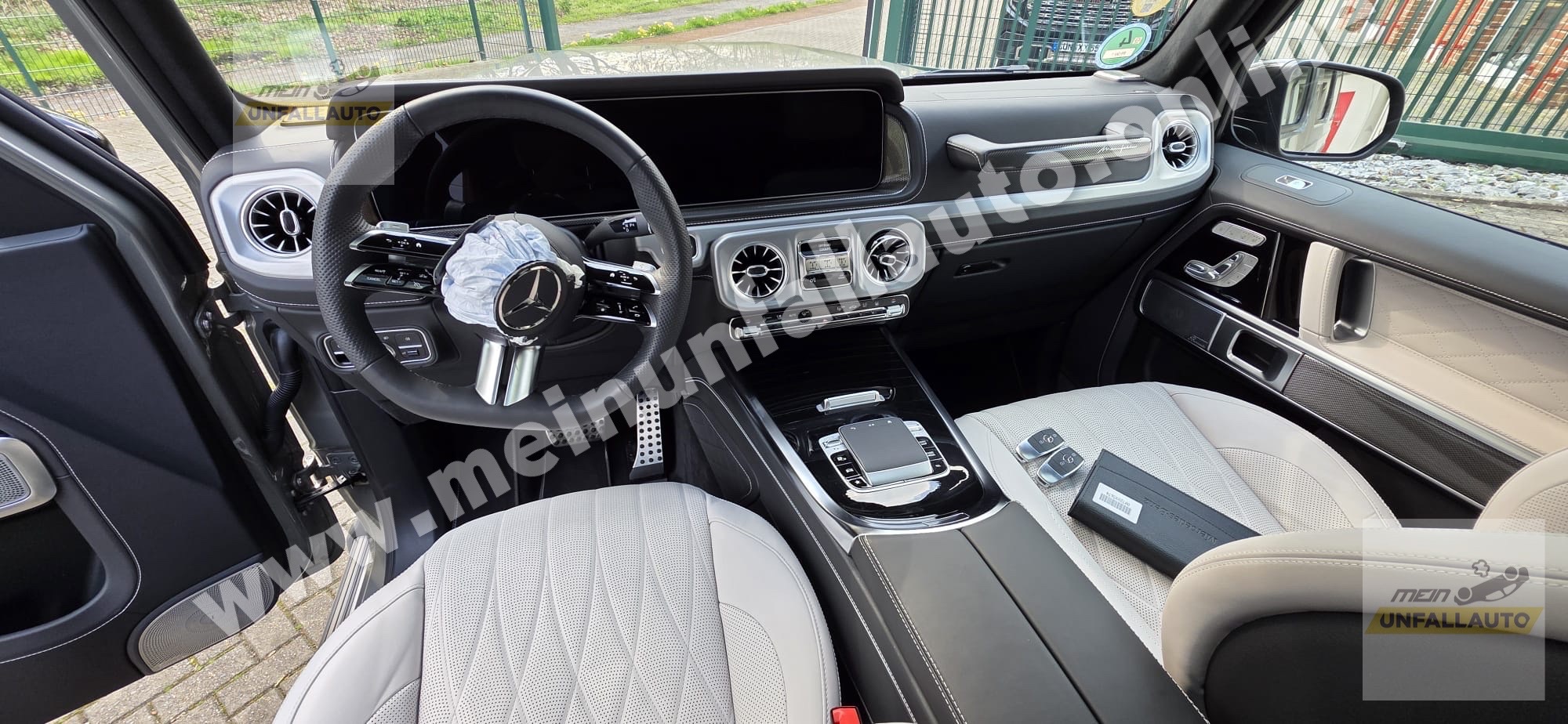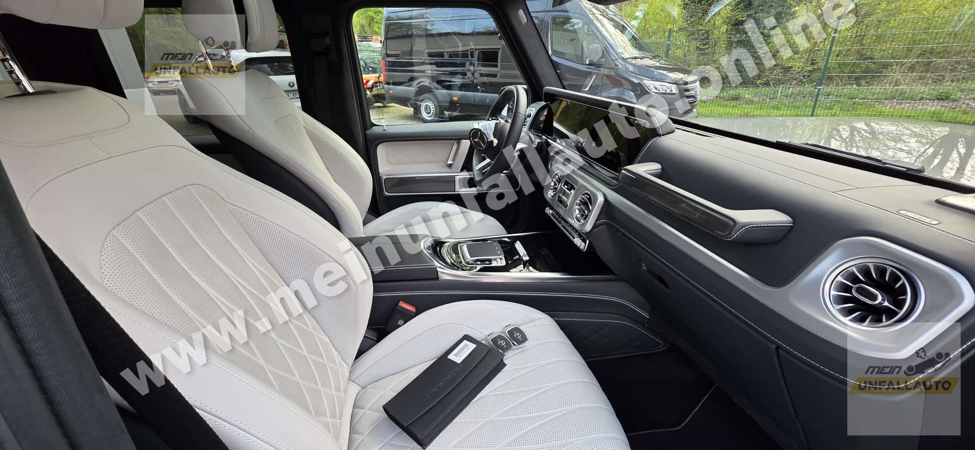 Ausstattungs-Paket: Logo-Paket schwarz, Fernbedienung für Standheizung / Zusatzheizung, Infotainment-System: Remote Services Premium, Innenausstattung: Zierteile Metall Struktur, Komfort-Paket, Lackierung: MANUFAKTUR uni, LM-Felgen AMG, Multimediasystem (Connect 20 Premium), Sitzbezug / Polsterung: MANUFAKTUR Leder Nappa, 2-farbig, Superior Interieur, Technik-Paket, Trittbretter seitlich (schwarz),