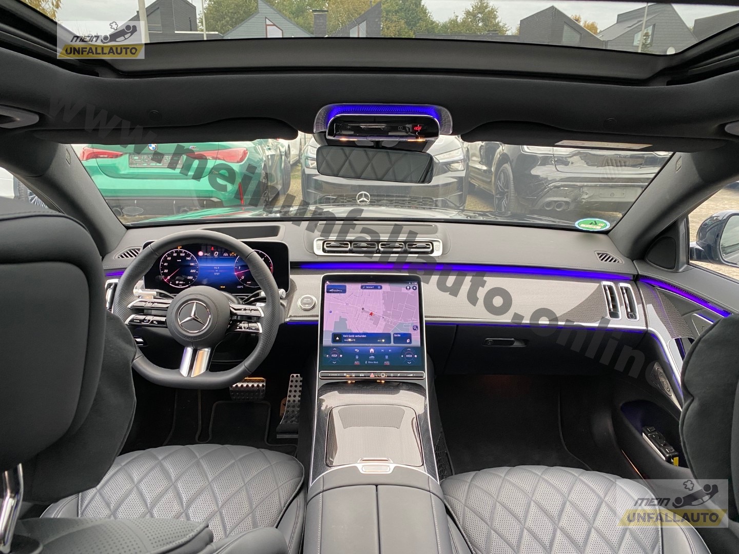 Ambiente-Beleuchtung, Aktive, Ausstattungs-Paket USB Plus, Diebstahlschutz-Paket Plus, Head-up-Display (Frontsichtanzeige), Innenausstattung: Zierteile Metall-Mischgewebe, Innenhimmel schwarz, Kraftstofftank: vergrößert, LM-Felgen vorn/hinten: 9x21 / 10x21 (AMG, 5-Doppelspeichen, schwarz), Mittelkonsole Metall-Mischgewebe Optik, schwarz silber, Night-Paket, Panorama-Schiebedach, Park-Paket mit 360° Kamera, Seitenscheiben hinten und Heckscheibe abgedunkelt, Sitzbezug / Polsterung: Leder Nappa, Sitze vorn: Klimatisierung, Sonnenschutz-Paket, Sound-System mit Soundpersonalisierung, Surround-System Burmester, Zusatzheizung (Standheizung)