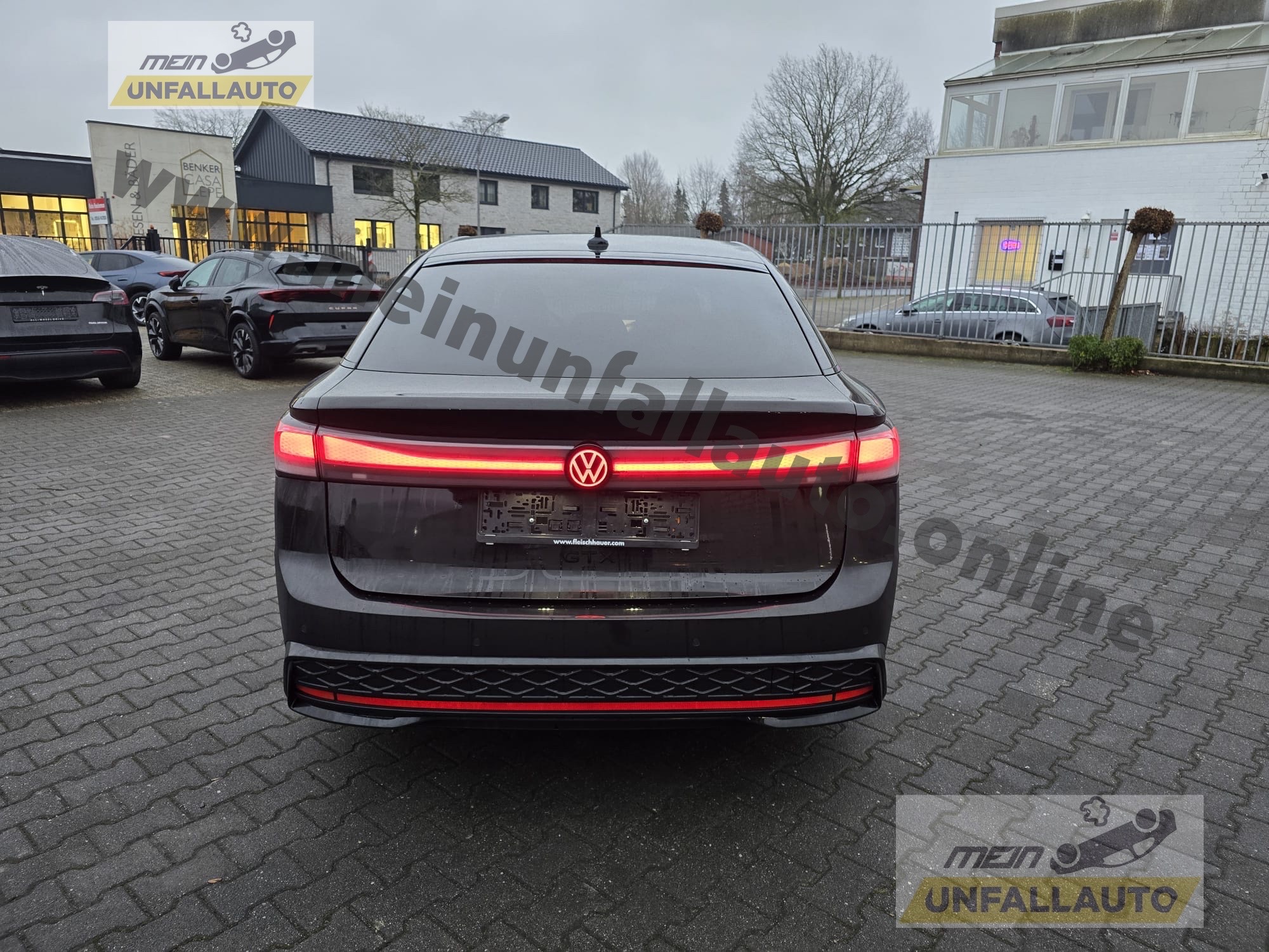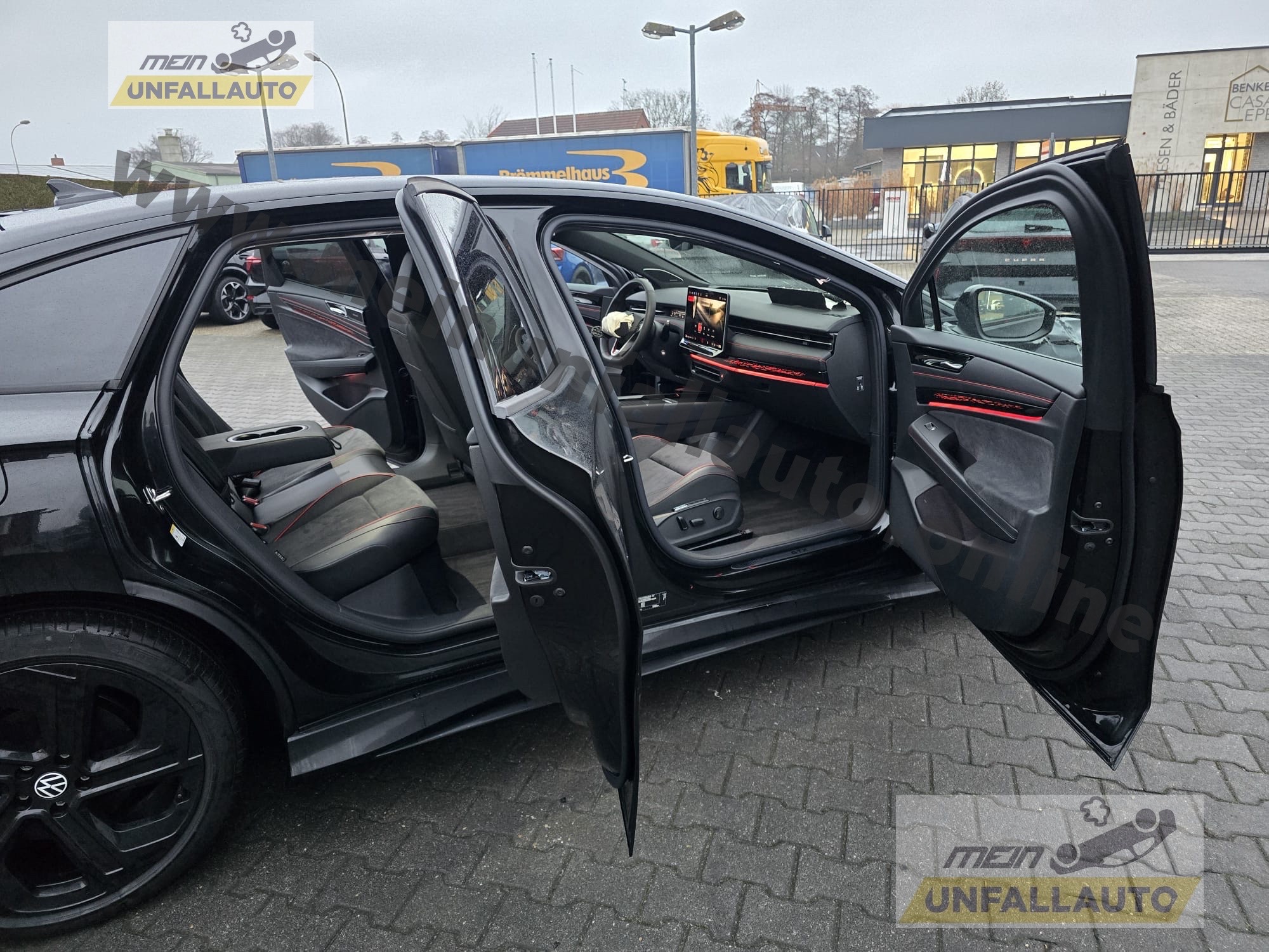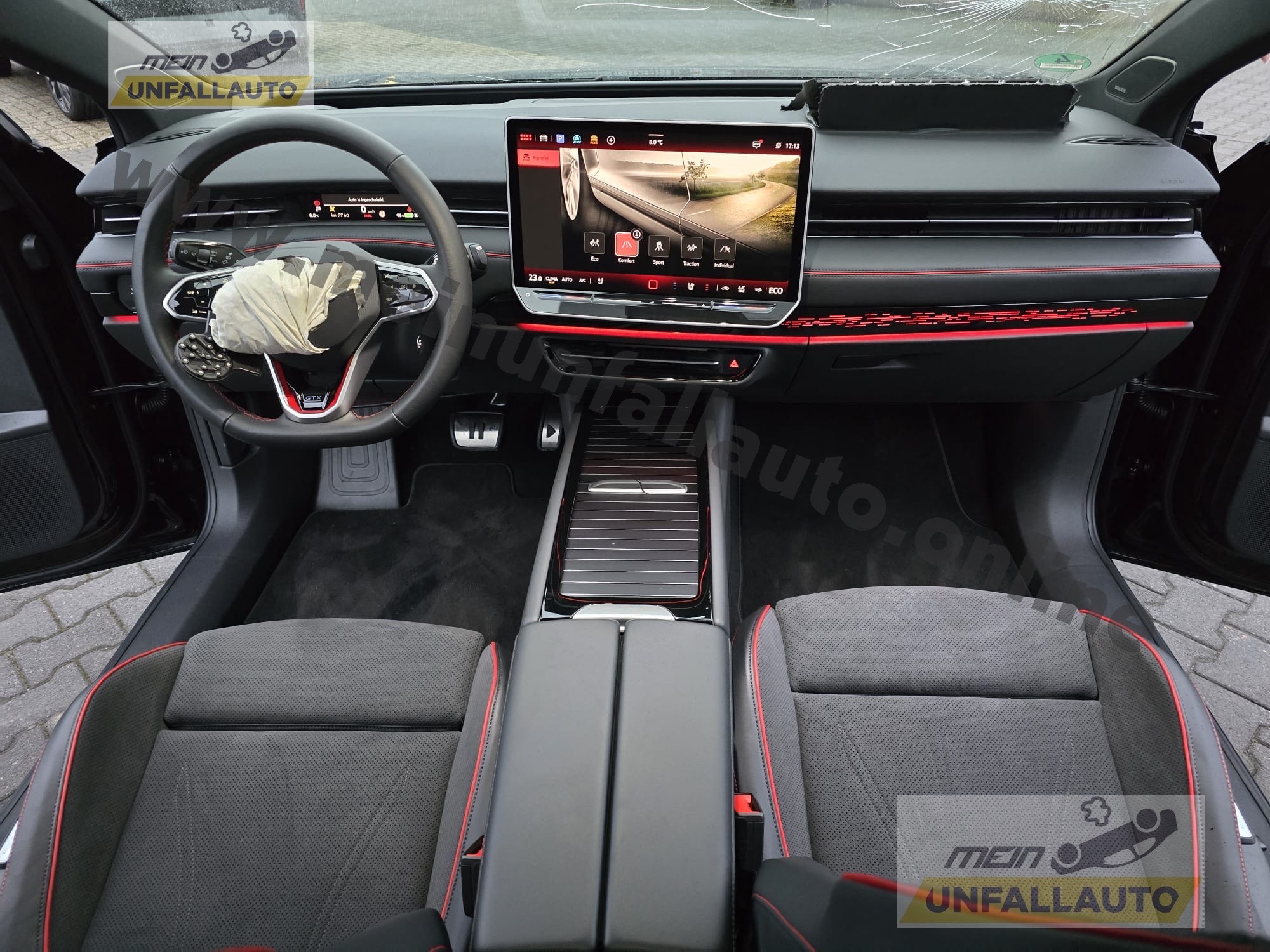 Airbag Fahrer-/Beifahrerseite, Beifahrerairbag abschaltbar, Akustischer Fußgängerschutz, Außensound (e-sound), Ambiente-Beleuchtung (30 Farben), App-Connect Wireless (Apple CarPlay, Android Auto), Audiosystem: Radio, Ausstattung GTX, Außenspiegel asphärisch, links und konvex, rechts, Außenspiegel elektr. verstell-, heiz- und anklappbar mit Spiegelabsenkung rechts, Außenspiegel mit Umfeldleuchte und Projektionsfunktion, Außenspiegel schwarz lackiert, Bordwerkzeug, Diebstahl-Warnanlage (Innenraumüberwachung, Back-up-Horn, Abschleppschutz), Diebstahlsicherung für Räder (Felgenschlösser), Elektromotor 250 kW (cont. 90 kW, Dual-Elektromotor), Fahrassistenz-System: Abbiegebremsfunktion und Ausweichunterstützung, Fahrassistenz-System: Ablenkungs- und Müdigkeitserkennung, Fahrassistenz-System: Dynamische Fernlichtregulierung (Dynamic Light Assist), Fahrassistenz-System: Notbremsassistent Front assist mit Fußgänger- und Fahrraderkennung, Fahrassistenz-System: Spurwechselassistent (Side Assist) mit Auspark-Assistent und Ausstiegswarnung, Fahrassistenz-System: Verkehrszeichenerkennung, Fernentriegelung Heckklappe, Frontkamera (Multifunktionskamera Frontscheibe), Gepäckraumboden höhenverstellbar, Gepäcksicherungsnetz, Getriebe für Elektrofahrzeug, Head-up-Display mit Augmented Reality, Heckleuchten LED, Blinkleuchten dynamisch, HV-Batterie 86 kWh netto / 91 kWh brutto, Innenspiegel mit Abblendautomatik, Insassen-Schutzsystem proaktiv, Isofix-Aufnahmen für Kindersitz an Beifahrersitz und Rücksitz (inkl. i-Size-Kindersitze), Karosserie: 5-türig, Kopfstützen hinten (3-fach), Ladekabel mit Typ 2-Stecker (Mode 3, 16 A), Ladeleistung HV-Batterie 11 kW (Wechselstrom AC), Matrix-LED-Scheinwerfer (IQ.Light) inkl. autom. Fahrlichtschaltung, Schlechtwetter-Licht und Begrüßungsfunktion, Maximale DC-Ladeleistung (Gleichstrom) abhängig von der Anriebsbatterie, Multimedia-Schnittstelle 2 x USB (Typ C) vorn und 2 x USB-Ladeanschluß (Typ C) Mittelkonsole hinten (45 W), Notrufsystem, Pedale Edelstahl, Progressivlenkung, Radioempfang digital (DAB+), Reifenkontroll-Anzeige, Rücksitzlehne geteilt mit Mittelarmlehne und Durchladeeinrichtung, Scheibenwaschdüsen heizbar, Schließ-/Startsystem Keyless Access mit Safesicherung, Schnellladevorrichtung (CCS-Ladedose), Service-System: Intelligente Fahrzeugvernetzung (Car2X), Sonnenblenden mit Spiegel (beleuchtet), Sprachassistent IDA, Stoßfänger Sport-Design, Verbandkasten und Warndreieck, Vorbereitung Onlinedienste We Connect (Plus) oder VW Connect (Plus) und Online-Update-Fähigkeit, VW Logo vorn / hinten, Leiste zwischen Scheinwerfer und Türgriffmulden außen beleuchtet, Warnanlage für Sicherheitsgurte vorn und hinten