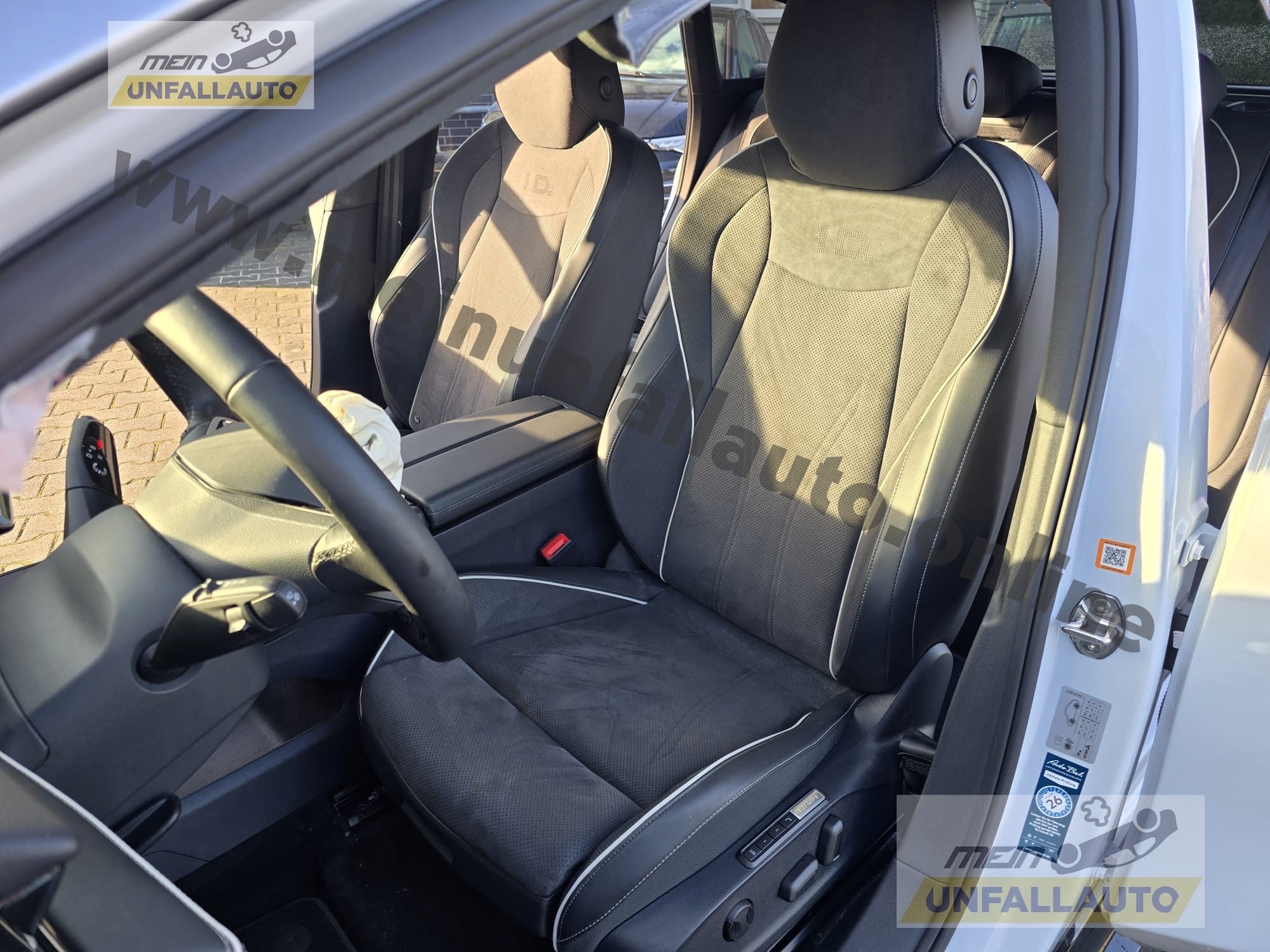 Airbag Fahrer-/Beifahrerseite, Beifahrerairbag abschaltbar, Akustischer Fußgängerschutz, Außensound (e-sound), App-Connect Wireless (Apple CarPlay, Android Auto), Audiosystem: Radio, Außenspiegel asphärisch, links und konvex, rechts, Außenspiegel elektr. verstell-, heiz- und anklappbar mit Spiegelabsenkung rechts, Außenspiegel mit Umfeldleuchte und Projektionsfunktion, Außenspiegel schwarz lackiert, Bordwerkzeug, Dachreling schwarz, Diebstahl-Warnanlage (Innenraumüberwachung, Back-up-Horn, Abschleppschutz), Diebstahlsicherung für Räder (Felgenschlösser), Elektromotor 210 kW (EDFB), Fahrassistenz-System: Abbiegebremsfunktion und Ausweichunterstützung, Fahrassistenz-System: Ablenkungs- und Müdigkeitserkennung, Fahrassistenz-System: Notbremsassistent Front assist mit Fußgänger- und Fahrraderkennung, Fahrassistenz-System: Spurwechselassistent (Side Assist) mit Auspark-Assistent und Ausstiegswarnung, Fahrassistenz-System: Verkehrszeichenerkennung, Fernentriegelung Heckklappe, Frontkamera (Multifunktionskamera Frontscheibe), Gepäckraum-Abtrennung (Netztrennwand), Gepäckraumboden höhenverstellbar, Getriebe für Elektrofahrzeug, Head-up-Display mit Augmented Reality, HV-Batterie 82 kWh brutto / 77 kWh netto, Innenspiegel mit Abblendautomatik, Insassen-Schutzsystem proaktiv, Isofix-Aufnahmen für Kindersitz an Beifahrersitz und Rücksitz (inkl. i-Size-Kindersitze), Karosserie: 5-türig, Kopfstützen hinten (3-fach), Ladekabel mit Typ 2-Stecker (Mode 3, 16 A), Ladeleistung HV-Batterie 11 kW (Wechselstrom AC), LM-Felgen, Maximale DC-Ladeleistung (Gleichstrom) abhängig von der Anriebsbatterie, Multimedia-Schnittstelle 2 x USB (Typ C) vorn und 2 x USB-Ladeanschluß (Typ C) Mittelkonsole hinten (45 W), Notrufsystem, Pedale Edelstahl, Radioempfang digital (DAB+), Reifenkontroll-Anzeige, Rücksitzlehne geteilt mit Mittelarmlehne und Durchladeeinrichtung, Scheibenwaschdüsen heizbar, Schließ-/Startsystem Keyless Access mit Safesicherung, Schnellladevorrichtung (CCS-Ladedose), Schriftzug auf der Gepäckraumklappe, weiß, Service-System: Intelligente Fahrzeugvernetzung (Car2X), Sonnenblenden mit Spiegel (beleuchtet), Sprachassistent IDA, Stoßfänger Wagenfarbe, Verbandkasten und Warndreieck, Vorbereitung Onlinedienste We Connect (Plus) oder VW Connect (Plus) und Online-Update-Fähigkeit, Warnanlage für Sicherheitsgurte vorn und hinten